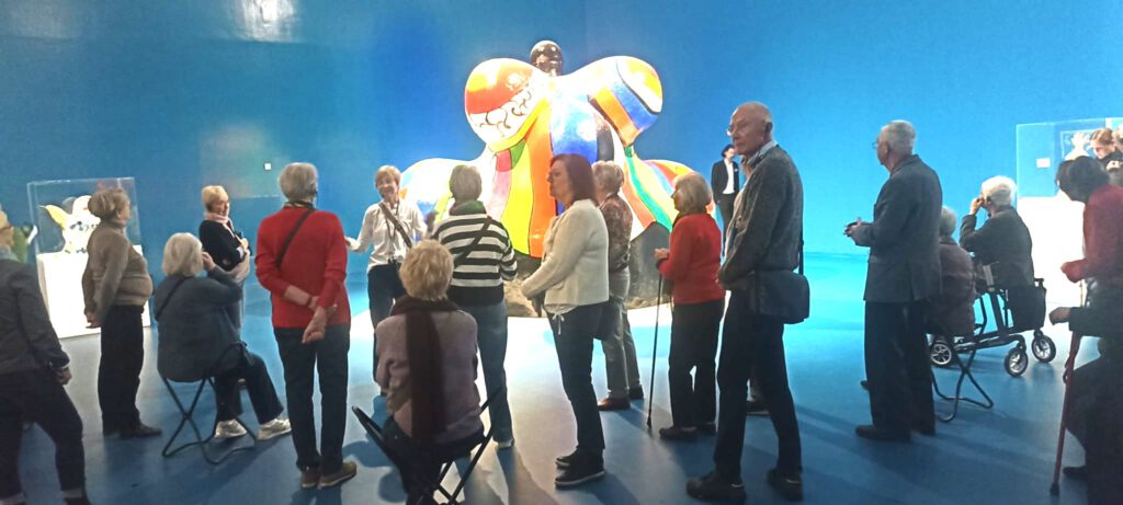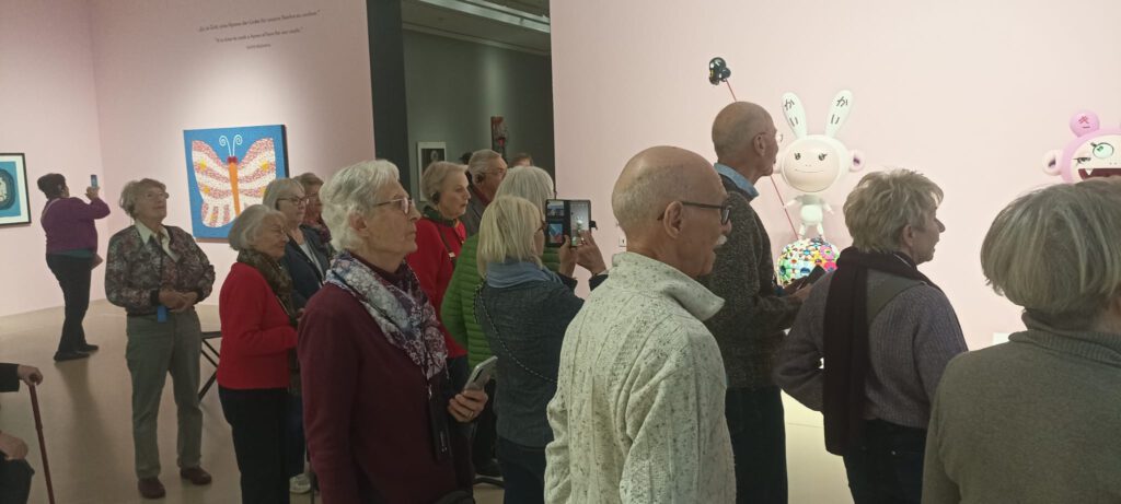 Am Dienstag, dem 18.11.2025 hatten wir unsere Mitglieder und Gäste zur Führung in die Sonderausstellung „Niki, Kusama, Murakami, Love for Infinity“ in das Sprengel-Museum eingeladen. Dieses Angebot stieß auf großes Interesse. Unser Vorstandsmitglied Michael Reichel konnte 27 Teilnehmer begrüßen. Unter der kundigen Führung von Frau Andrea Lorenz-Probst sahen wir uns die gemeinsame Ausstellung der Werke von Niki de Saint-Phalle und der japanischen Künstler Kusama und Murakami an. Unsere Mitglieder und Gäste waren begeistert und genossen diese beeindruckende Ausstellung.
